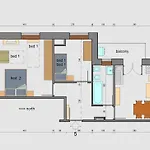 Эти апартаменты насчитывают 2 спальни. В этих апартаментах есть 1 ванная комната.